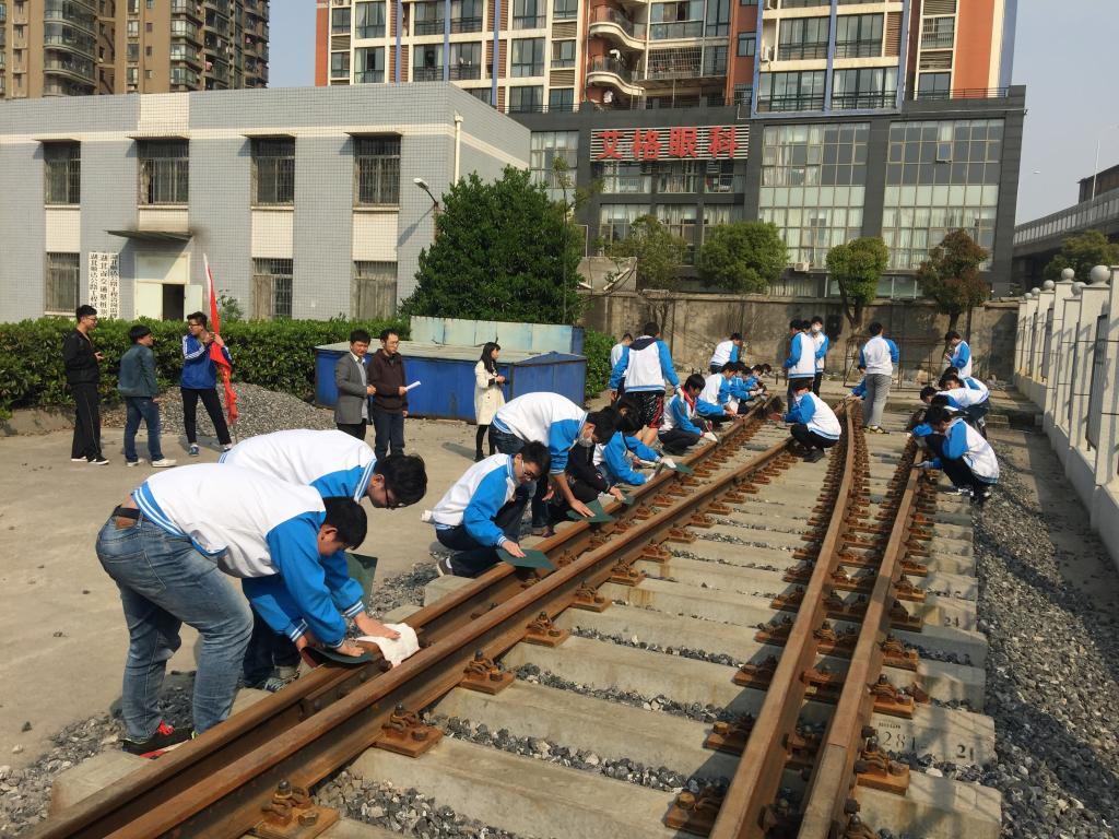 据悉,学校北门轨道区为我校建设湖北省特色专业——城市轨道交通工程技术专业的配套项目,已于2015年12月建设完成。本次“轨道养护”活动主要是希望将志愿服务与专业背景结合起来,让订单班同学在学习雷锋的同时,加深对专业知识的认识。