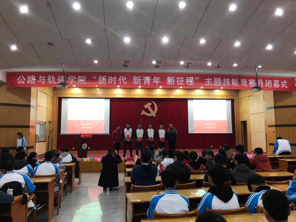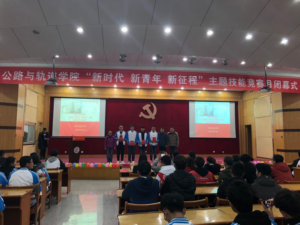 活动上,副院长熊文林宣读了《关于表彰2017年公路与轨道学院在国赛、省赛及竞赛月中取得优异成绩的选手的决定》,并希望受表彰的同学戒骄戒躁,再接再厉,同时希望全院学生以他们为学习榜样,勇于进取,不断创新,再创佳绩。随后,学院领导为优秀选手代表进行了颁奖。吕广同学作为选手代表进行了发言,他说作为新时代的大学生,同学们认真通读和学习了习总书记的十九大报告,对国家和自己的未来都很憧憬,他们一定会牢记嘱托,珍惜机遇,练就技能,提升水平,争取早日成为社会主义现代化事业的建设者和接班人。