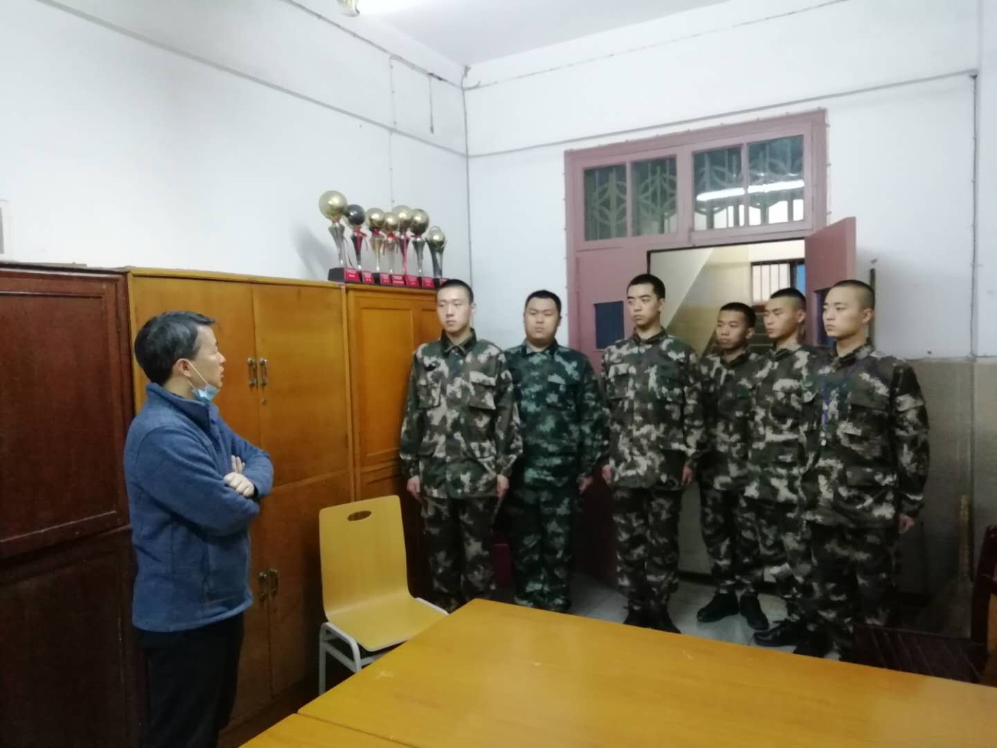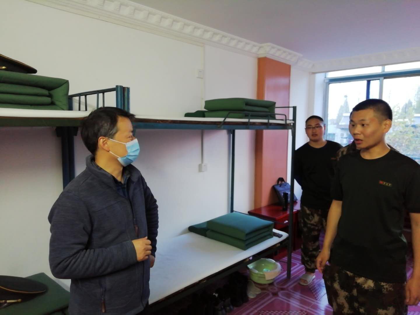 最后,程院长走进了学生寝室,关心士官生目前的生活情况、身体状况和困难问题,与他们亲切交谈,叮嘱他们一定要保重身体。并对他们提出三点希望:一是勇于担当,增强军人荣誉感;二是强化学习,掌握专业本领;三是迎难而上,练好军事体能。学生纷纷表示,会珍惜机会,集中精力,努力学习,刻苦训练。