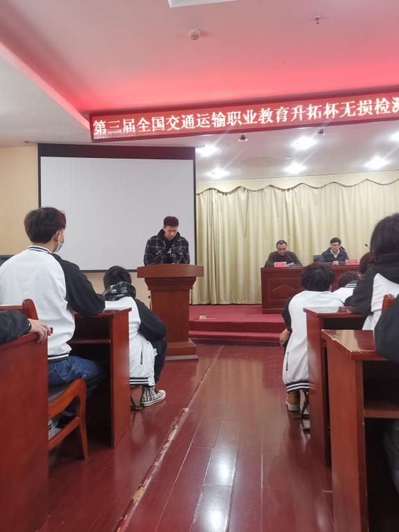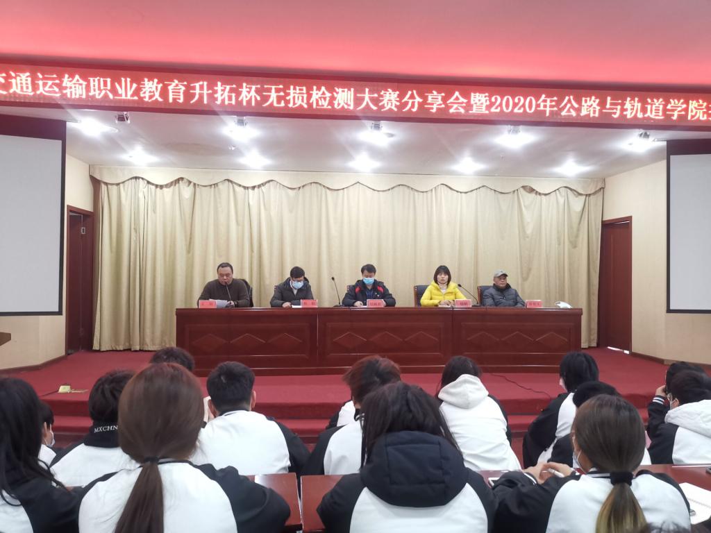 2020年12月10日,公路与轨道学院在培训楼三楼多功能厅举行了“第三届全国交通运输职业教育升拓杯无损检测大赛分享会暨2020年公路与轨道学院技能大赛动员会”。出席会议的有院长程海潜、副院长杨帆、指导老师唐明义与王刚、2012届毕业生优秀学长税毅及全院2020级各班学生代表。