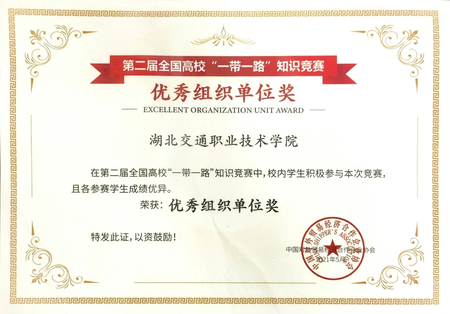 近日,由中国对外贸易经济合作企业协会主办、“一带一路”职教联盟协办的第二届全国高校“一带一路”知识竞赛”拉开序幕。我校公轨学院学生取得优异成绩,喜获35个一等奖,192个二等奖,153个三等奖以及126个优秀奖。本次比赛共有来自全国各地的数百所高校的数千位学生同台竞技,我校以优异的成绩位列高校荣誉榜第五。