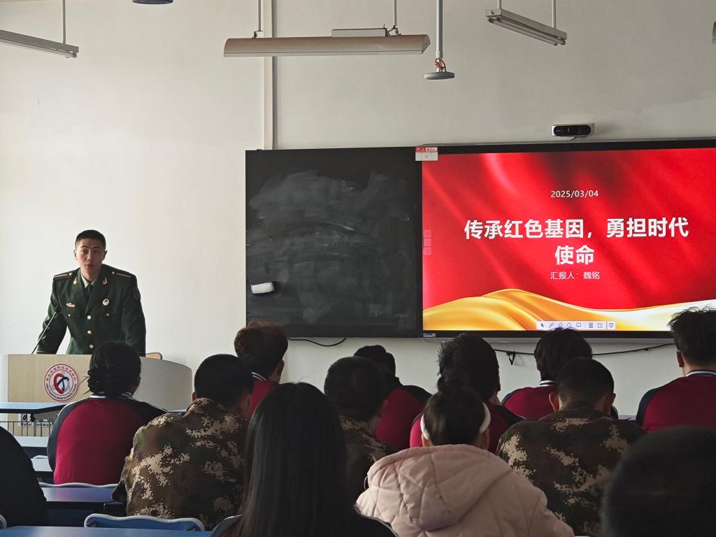 2022级士官生预备党员张吉祥以“新时代青年,奋斗正当时”为主题,分享了自己丰富多彩的实践活动。他讲述在参与志愿服务时,如何不惧困难,积极为社区居民解决实际问题,用汗水诠释新时代青年的担当。在一次次的服务中,他深刻体会到只有将个人奋斗融入时代洪流,才能实现人生价值,他的分享让在场同学备受鼓舞。另一名士官生预备党员魏铭从“传承红色基因,勇担时代使命”出发,畅谈自己的实践经历。他提到在参观红色革命纪念馆时,被先辈们的英勇事迹深深震撼,从此便立志传承红色精神。在日常学习与训练中,他时刻以高标准要求自己,通过参与各类红色文化宣传活动,将红色基因传递给更多同学。