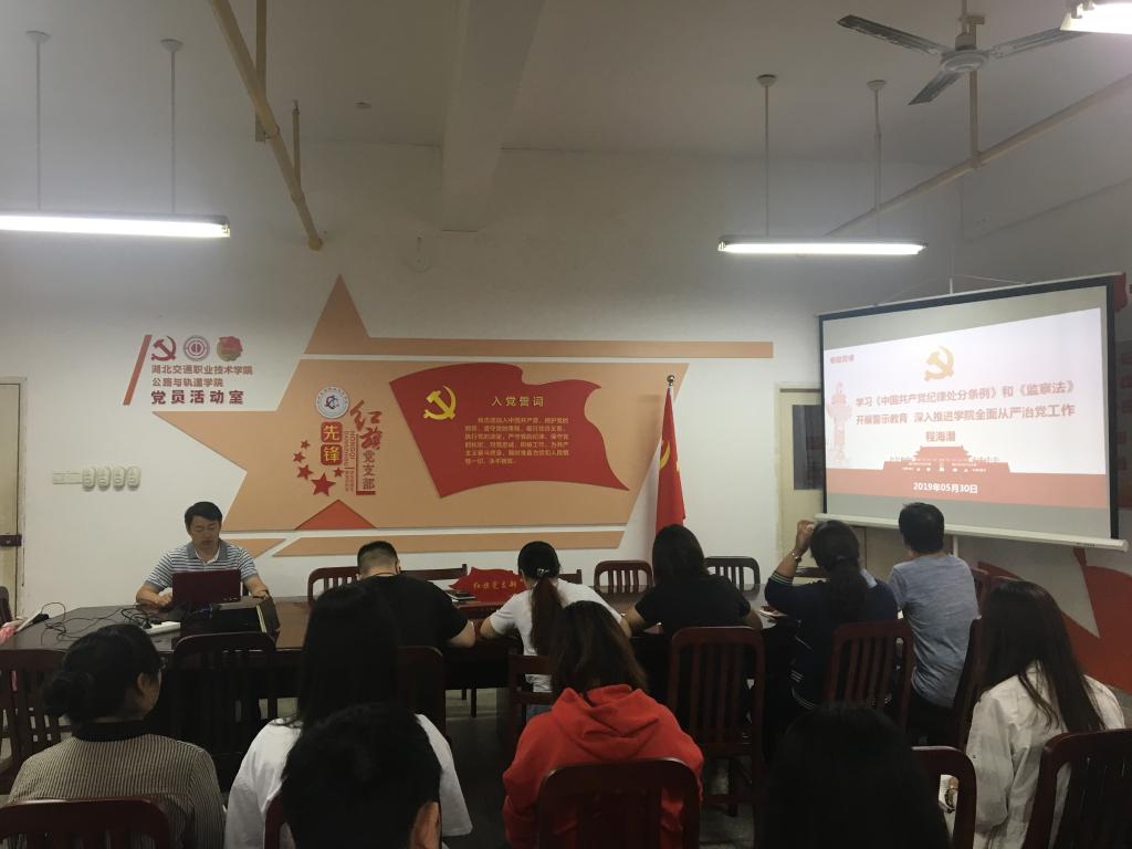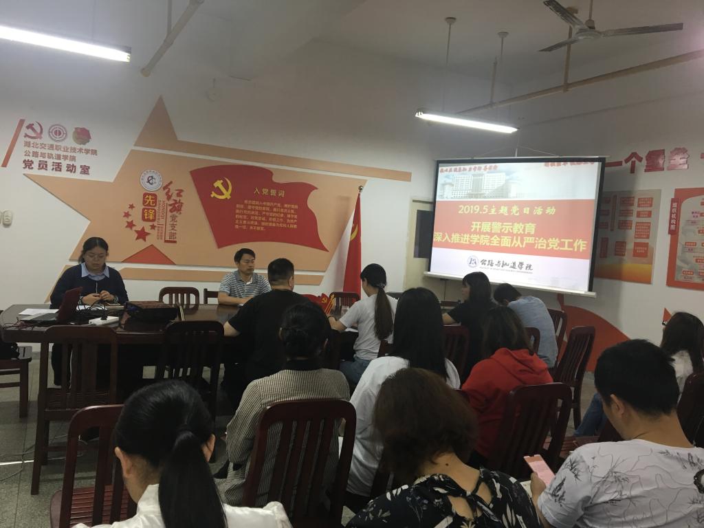 为推动党性观念、纪律规矩意识和党纪国法入脑入心,教育引导广大党员干部更加自觉树牢“四个意识”、坚定“四个自信”,坚决做到“两个维护”,5月30日下午,公路与轨道学院党总支在G506党员活动室组织以“开展警示教育 深入推进学院全面从严治党工作”为主题的支部主题党日活动,全体党员老师参加了会议。