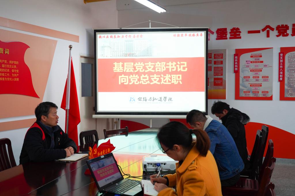 上午,教工党支部和学生党支部分别以党员大会形式召开组织生活会和开展民主评议党员工作,会上全体教工党员开展批评与自我批评。个人自评、党员互评主要依据党员检视3个重点问题情况开展,各位老师能认真总结学习感悟、大胆进行自我剖析、坦然面对同事意见。下午,党总支述职大会由公路与轨道学院党总支书记程海潜同志主持,公路与轨道学院教工党支部书记胡凯和学生党支部书记沈力,分别向党总支汇报了一年来在工作进展情况、取得成果、存在不足与来年计划。