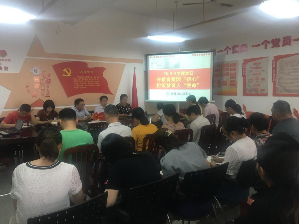 首先,党总支副书记朱婧带领全体党员集中学习了相关文件精神,介绍了教师队伍建设取得的成绩,并详细讲解了政策落地落实情况等。随后,党员代表陈小雄、胡凯、吴夏同志围绕“教育报国初心”和“筑梦育人使命”做了交流发言。最后,党总支书记程海潜强调,我们广大教师要坚持从事教育事业的初心,以建设高质量院校为目标,发扬创新进取的精神。