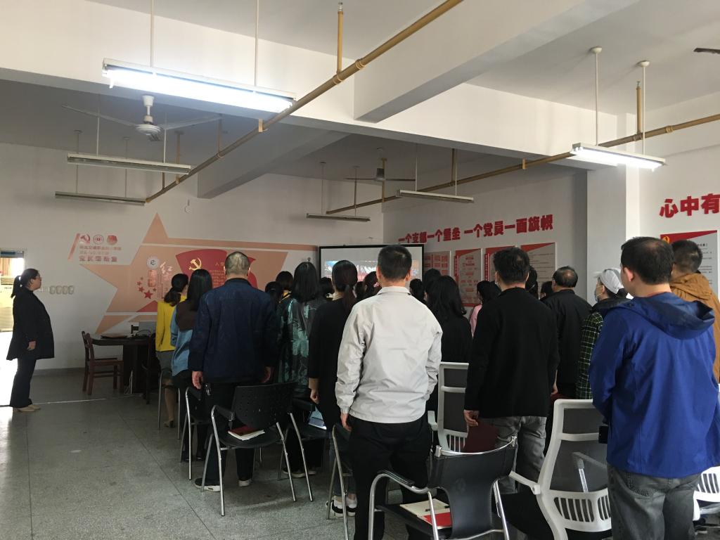 会议在国歌声中开始,全体党员诵读了党章,集中学习了《习近平在集体学习时强调 贯彻落实好新时代党的组织路线 不断把党建设得更加坚强有力》《习近平总书记关于扶贫工作重要论述和视察湖北重要讲话精神资料汇编》《习近平总书记在全国组织会议上的讲话》《中国共产党基层组织选举工作条例》等重要文件精神,通报近期基层党组织换届工作准备。