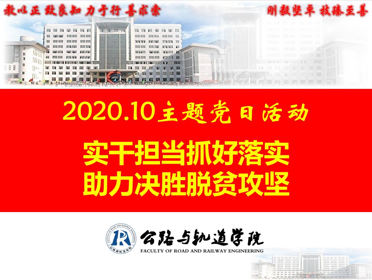 10月29日下午,公轨学院党总支组织召开“实干担当抓好落实,助力决胜脱贫攻坚”主题党日活动。会议由学院党总支副书记朱婧主持,公轨学院全体党员教师参加活动。