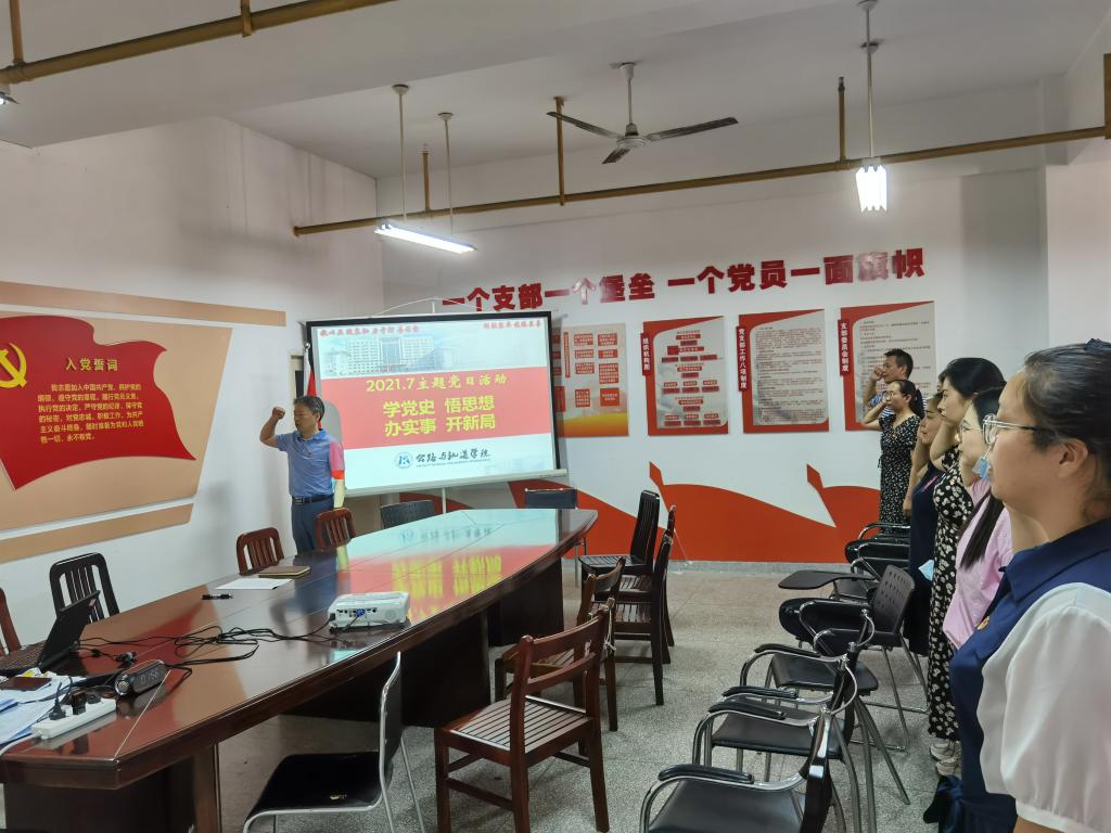 根据省交通运输厅机关党委《关于2021年7月份支部主题党日活动安排》和学校党委有关通知要求,7月21日下午,公路与轨道学院党总支组织全体教工党员在党员活动室举行了以“学党史、悟思想、办实事、开新局”为主题的党日活动暨专题组织生活会,校长陈方晔作为普通党员参会。