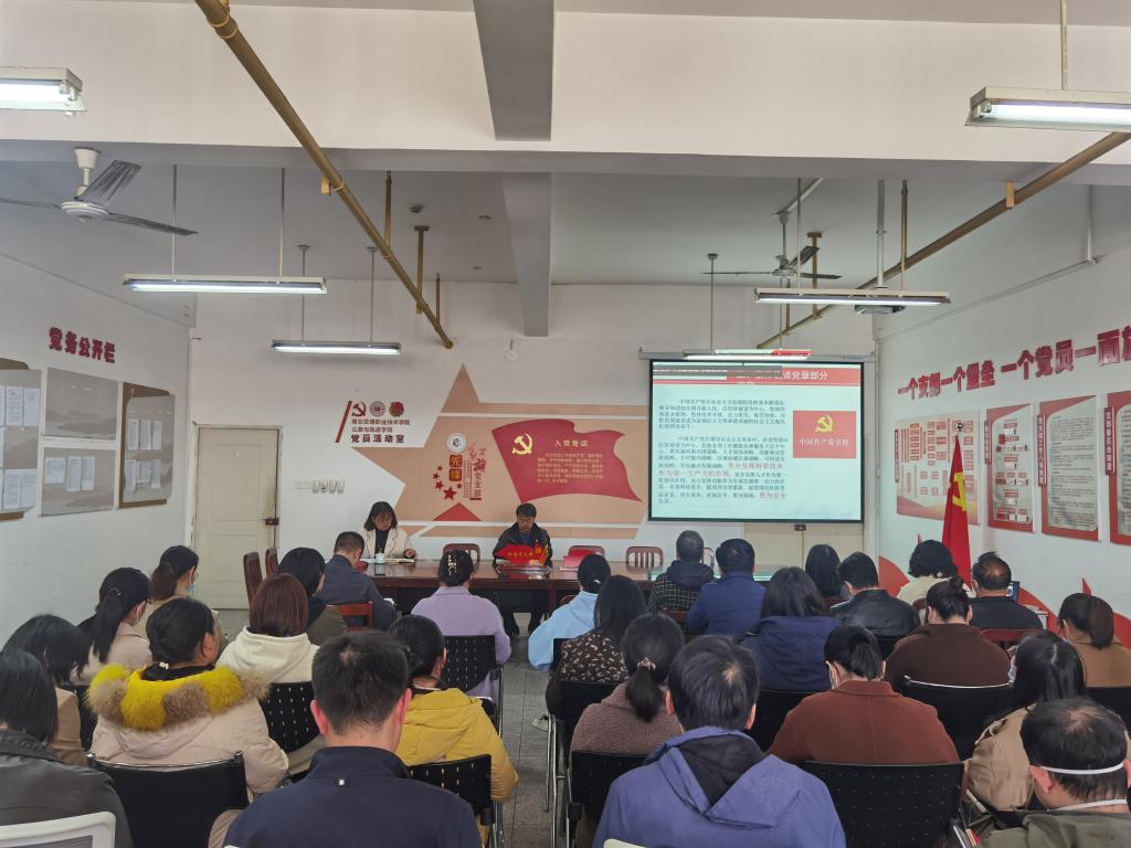 会上全体党员诵读《中国共产党章程》部分章节,集中学习了《中国共产党第二十届中央委员会第二次全体会议公报》、《习近平在中共中央政治局第二次集体学习时强调加快构建新发展格局增强发展的安全性主动权》、《习近平对深入开展学雷锋活动做出重要指示 强调深刻把握雷锋精神的时代内涵让雷锋精神在新时代绽放更加璀璨的光芒》、《信访工作条例》、《关于5起违规吃喝风腐一体典型案例的通报》等文件精神,并开展了党员不得信仰宗教专题教育。交流研讨环节,杨帆、黄梅两名党员教师结合活动主题和自身工作,分别从“教师教学能力”、“课程思政建设”角度如何当好“学院建设的开路先锋”进行了交流发言。