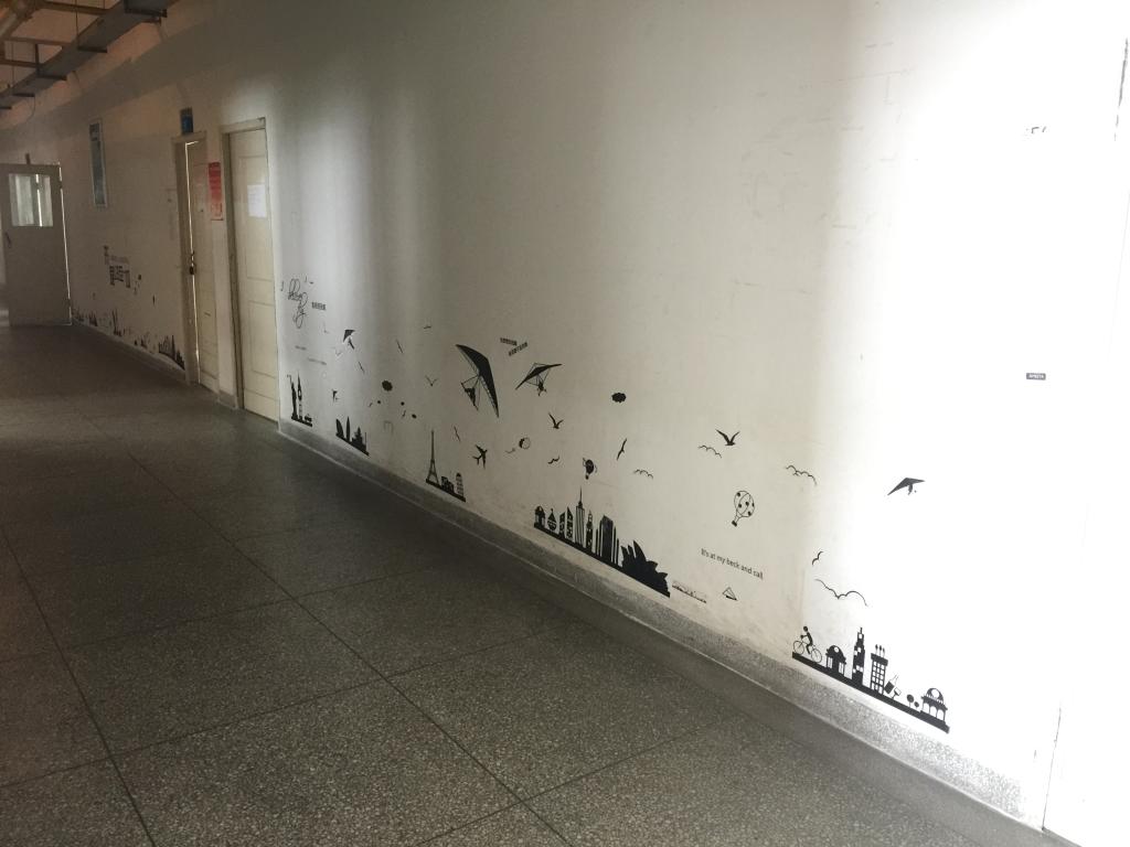 整个雷锋月,青年志愿者协会带领各班团支部,分不同的时段,开展了对实训中心教学楼五、六、七、八层墙面的清洁与美化活动。在活动中,志愿者服务的同学们戴着口罩、手套,拿着磨砂纸,细致的洗刷墙面的脚印和污渍,还墙面“洁白”。尽管教学楼墙面众多,清理面积较大,而且加上年久未修,清理难度也较大。但是大家耐心十足,不放过任何一个角落。清理墙壁后,对公共区域贴墙纸,配上励志的语录,瞬间让墙壁亮起来。有些标语励志,如:将来的你一定会感谢现在努力的自己;有些标语则颇有童趣,感觉萌萌哒……这些标语刚贴上去,就成了同学们中的热点话题,成了公路与轨道学院的一道风景线。