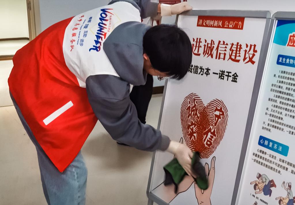 在小组长和社区工作人员的帮助下,志愿者们分工明确、热情满满,拿起扫帚、垃圾钳、铲子等清洁工具,对社区公共区域和社区之家进行了全面清理。志愿者们还对社区图书室的书架和书目进行了贴标签、归位、整理及清扫。经过近两个小时的辛勤劳动,社区之家焕然一新。