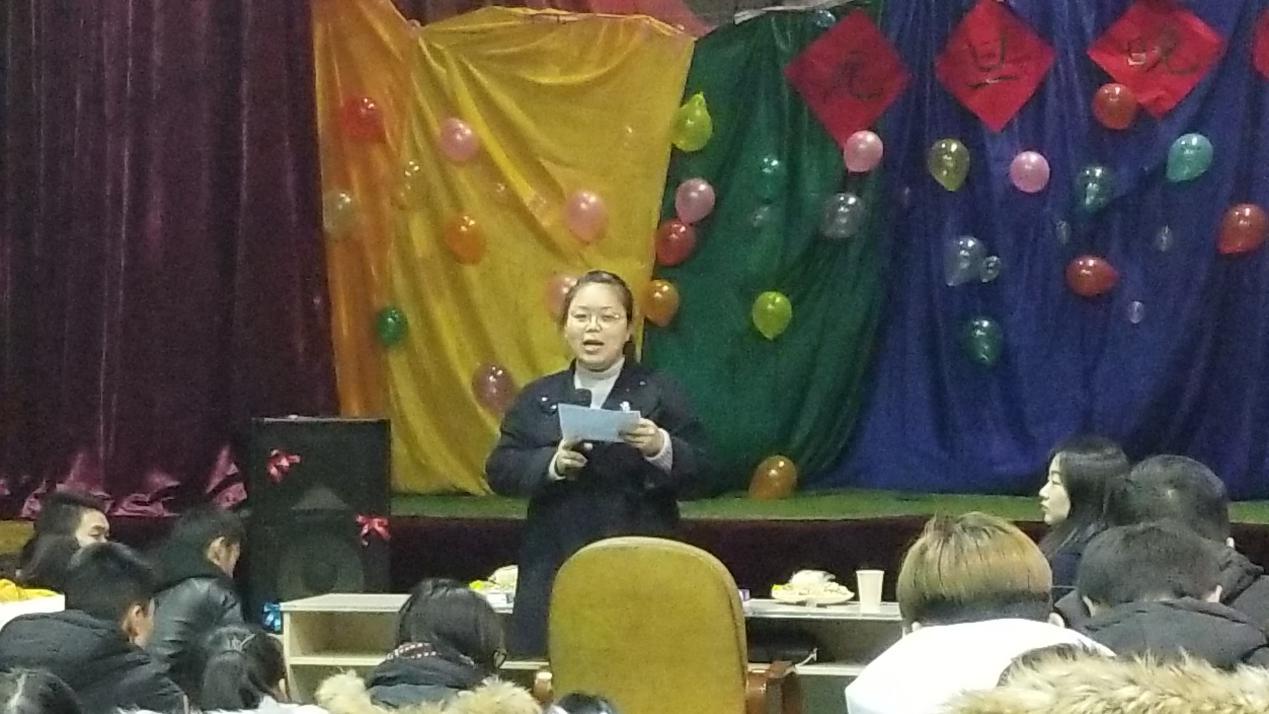 晚会结束,何文婷老师向学生们提出了几点希望:要做有道德的人、要做负责任的人、要做优秀的自己、要做坚强的人,让2018年的平庸,在2019年变得与众不同。