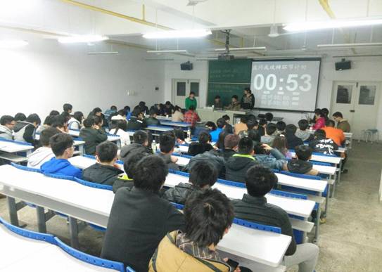 2014年3月11日晚,于我校实训大楼516、702、809教室举行了“挑战杯”辩论赛三场比赛。这三场比赛的评委嘉宾为道桥系第十二届辩论赛的优秀辩手和分团委学生会的各部部长。