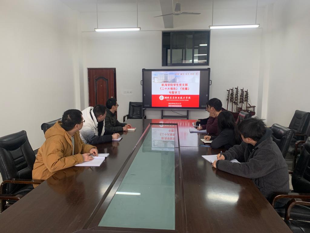 会前支部高度重视,在航海学院党总支的指导下,按照校党委组织部要求认真布署相关工作,学习相关文件资料,深入开展调查研究,召开支委会制定详细切实的实施方案,并组织全体党员在2月21日全天专题学习《党的二十大报告》和《党章》。会上,全体党员一起重温入党誓词,交纳党费,集中学习了《习近平在二十届中央政治局第一次集体学习时的讲话》、《习近平在二十届中央纪委二次全会上发表的重要讲话 》和《 中国共产党第二十届中央纪律检查委员会第二次全体会议公报》等文件精神,使与会党员充分认识到党的二十大的重大现实意义和深远历史意义,表示要坚决用党的二十大精神和习近平总书记系列讲话精神武装思想,学思践悟,把党的二十大精神转化为履职尽责、争先创优的实绩实效,推动学生支部各项工作不断取得新成效,迈上新台阶。