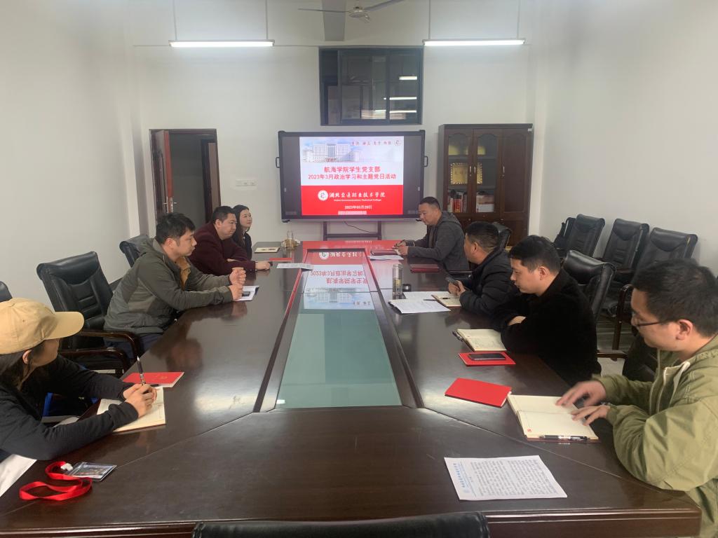 根据学校组织部《关于2023年3月份支部主题党日活动安排和政治学习的通知》要求,结合航海学院学生党支部工作实际情况,3月29日下午,航海学院学生党支部全体党员在党员活动室开展了政治学习和以《奋力当好建设先行区的开路先锋》为主题的党日活动。