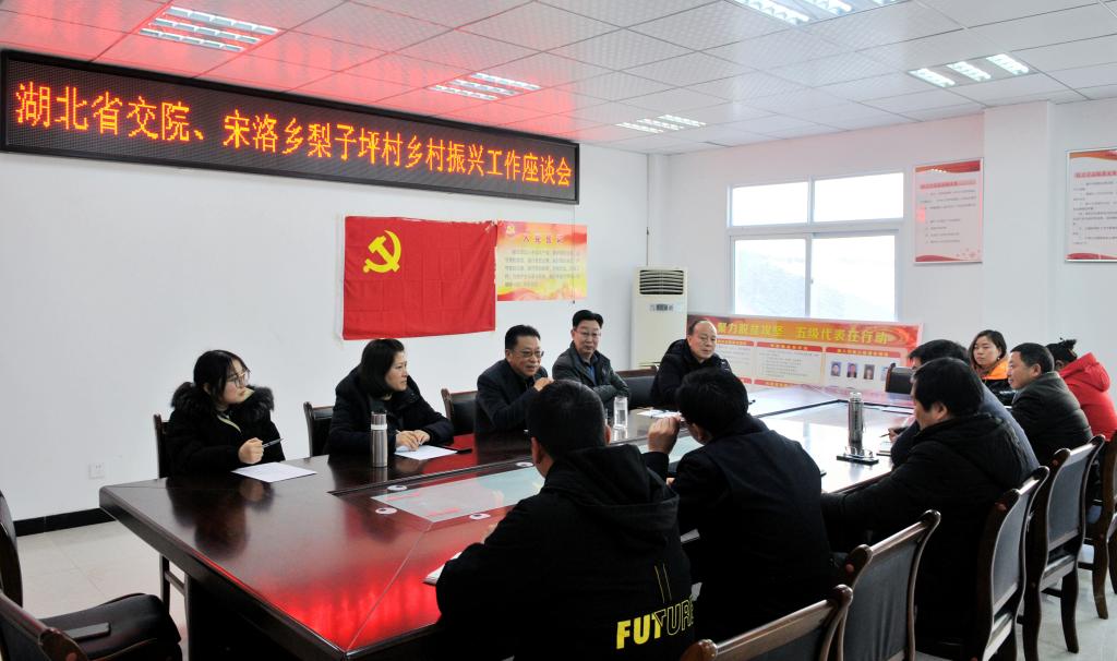 座谈会上,宋洛乡乡长王漪和梨子坪村支部书记钟秀华简要介绍了宋洛乡及梨子坪村的基本情况、未来规划及相关重点项目开展情况,希望学校在党建结对、旅游规划、产业扶贫等方面加强协同合作,共同推进梨子坪村乡村振兴工作。