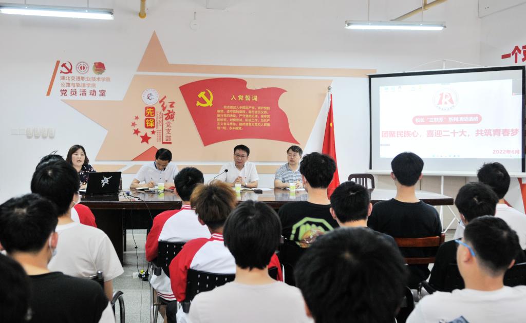 在认真聆听学生的发言后,陈方晔分享了自己的工作经历,拉近了与大家的距离,同时对同学们提出三点希望:一是要树立远大志向,坚定理想信念。今年是党的二十大召开之年,是实施“十四五”规划关键之年,也是建团100周年,新时代的青年,是中国梦的参与者、见证者、实践者,要积极主动投身于社会主义建设中。二是要刻苦学习,锤炼品质,主动创新,勤学专业知识、勤练技术技能,为交通强国建设贡献力量。三是要崇德向善,严于律己,秉承“重德、励志、笃学、尚能”的校训,始终保持积极的人生态度、良好的道德品质,争做堪当民族复兴大任的时代新人。