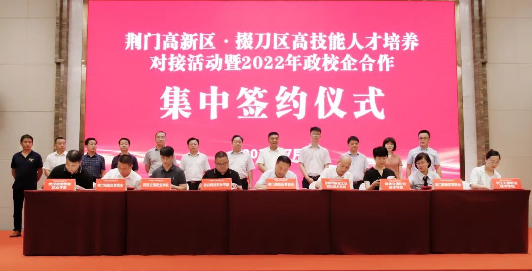 为进一步落实教育部“全国高校书记校长访企拓岗促就业专项行动”,深化政校企合作、拓宽就业渠道、挖掘就业岗位,7月20日,副校长谢彤带队赴荆门市高新区开展“访企拓岗促就业”专项行动,出席该区高技能人才培养对接活动暨2022年政校企合作集中签约仪式,并代表学校与荆门市高新区管委会签订了政校合作协议。