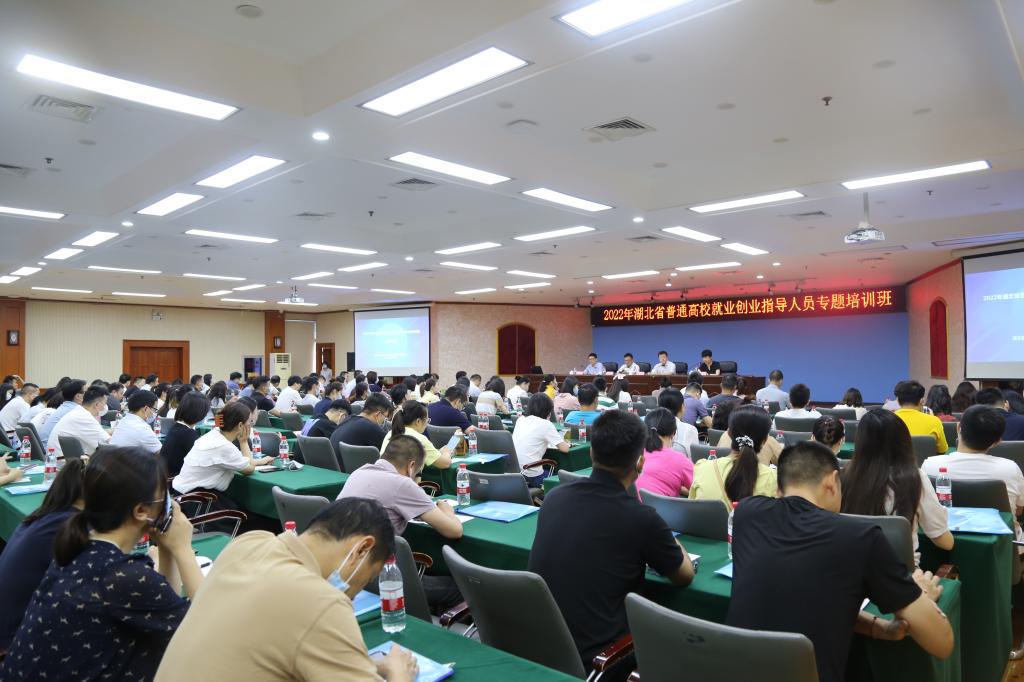 7月18日-22日,省高校毕业生就业指导服务中心在教培中心五楼学术报告厅成功举办2022年湖北省普通高校就业创业指导人员专题培训班。来自教育部学生服务与素质发展中心领导和全省各高校150余名就业创业指导人员参加了此次培训。副校长谢彤出席开班仪式并致欢迎辞。
