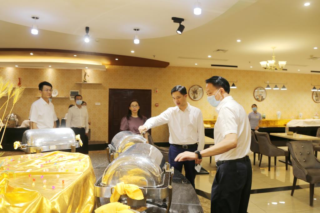 钟芝清一行先后深入餐厅、厨房、客房、职工书屋、党员活动室等地进行实地考察。每到一处,钟芝清都仔细察看、认真听取汇报、关切询问指导。在党员活动室,钟芝清与教培中心班子成员进行了亲切交谈,询问了外派干部工作生活情况,听取了教培中心党支部书记施裕国对中心近期工作的简要汇报。