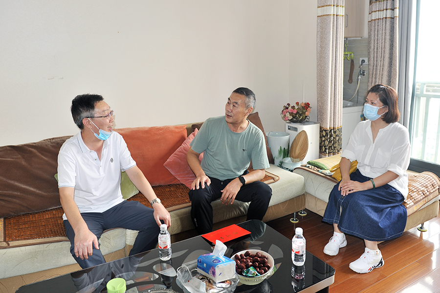 齐建模一行先后来到退休教师代表李金波、沈宜慧家中进行慰问,并根据疫情防控要求,委托有关同志慰问了薛林、徐美庆老师,为他们送去了慰问金,表达了学校对老教师们的敬意和问候。齐建模关切询问老教师的生活情况和身体状况,对他们为学校发展所做出的贡献表示诚挚感谢,听取他们对学校工作的意见和建议,希望老教师们一如既往关心支持学校的发展,祝愿他们身体健康、家庭和睦、幸福安康。(摄影/童洪川)