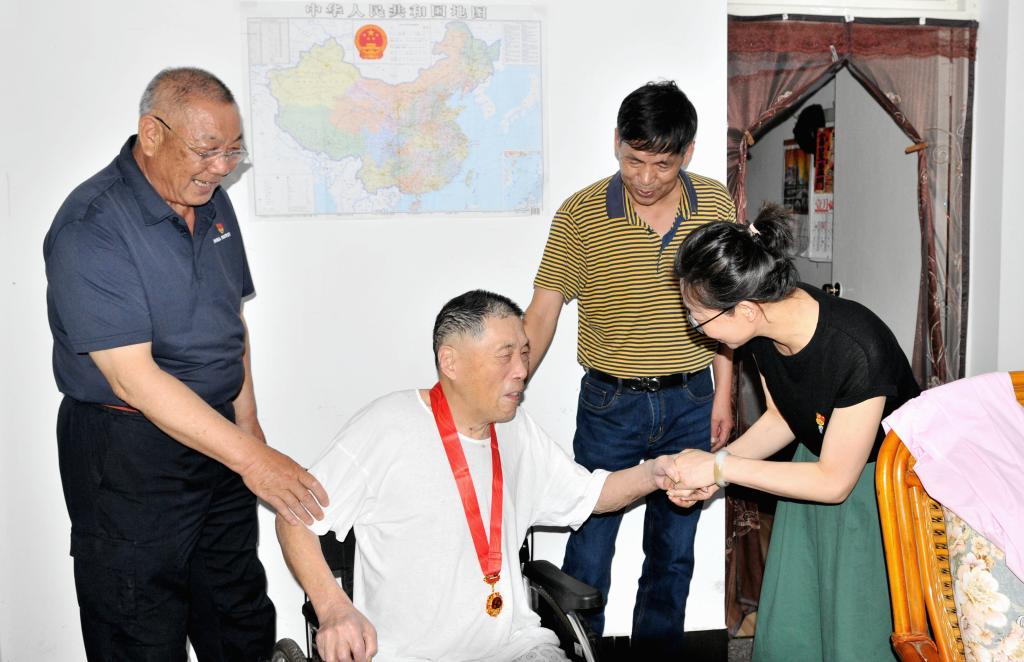 95岁高龄的关锡清党龄75年,他在抗美援朝战争中出色完成任务,曾担任湖北公路工程学校党委副书记,为学校的发展做出了卓有成效的贡献。王楚财同志戴着奖章格外激动,表示纪念章的发放,代表的是党和国家对老党员们的认可和信任,自己感到非常光荣,将继续发扬党的光荣传统和优良作风,竭诚服务人民,为学校的发展献言献策。