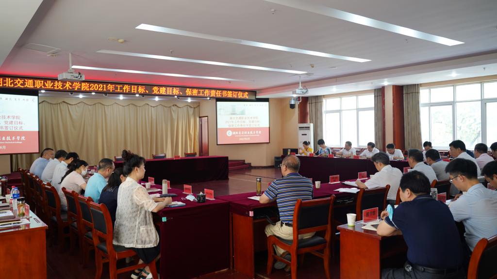 6月25日,学校在培训楼三楼多功能厅举行2021年工作目标、党建目标、保密工作责任书签订仪式,在建党百年华诞之际立下军令状,为全面推进学校“双高建设提高年”各项任务分解工作目标、压实主体责任,全体校领导、各部门负责人出席会议。