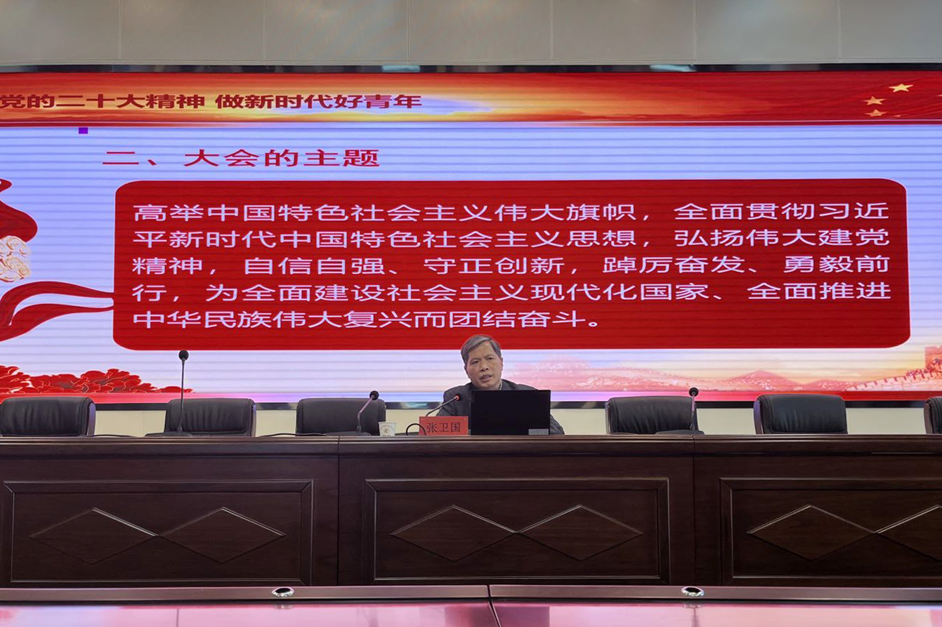 仪式后开始了团校第一课,马克思主义学院院长张卫国为全体学员解读了党的二十大精神。