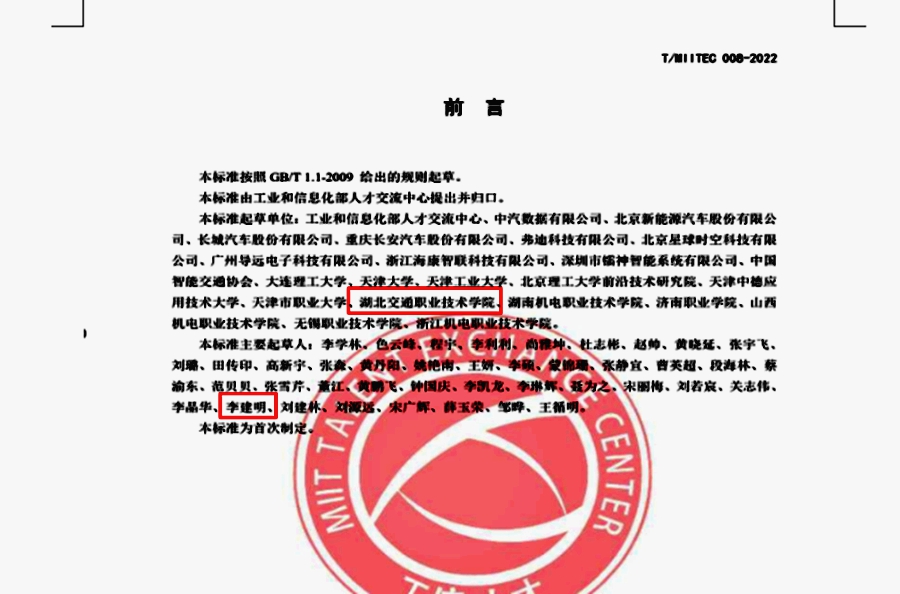 近日,由工业和信息化人才交流中心、中汽数据有限公司牵头,我校与北京新能源汽车股份有限公司、大连理工大学、天津大学等单位共同参与制定的《智能网联汽车产业人才岗位能力要求》团体标准正式发布。