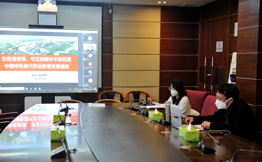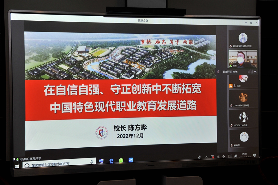 12月28日,按照省委教育工委、省教育厅有关通知和学校学习宣传贯彻党的二十大精神实施方案总体要求,校长陈方晔深入公路与轨道学院党总支,以线上线下相结合方式为学院全体党员讲授了题为《在自信自强、守正创新中不断拓宽中国特色现代职业教育发展道路》的专题党课。