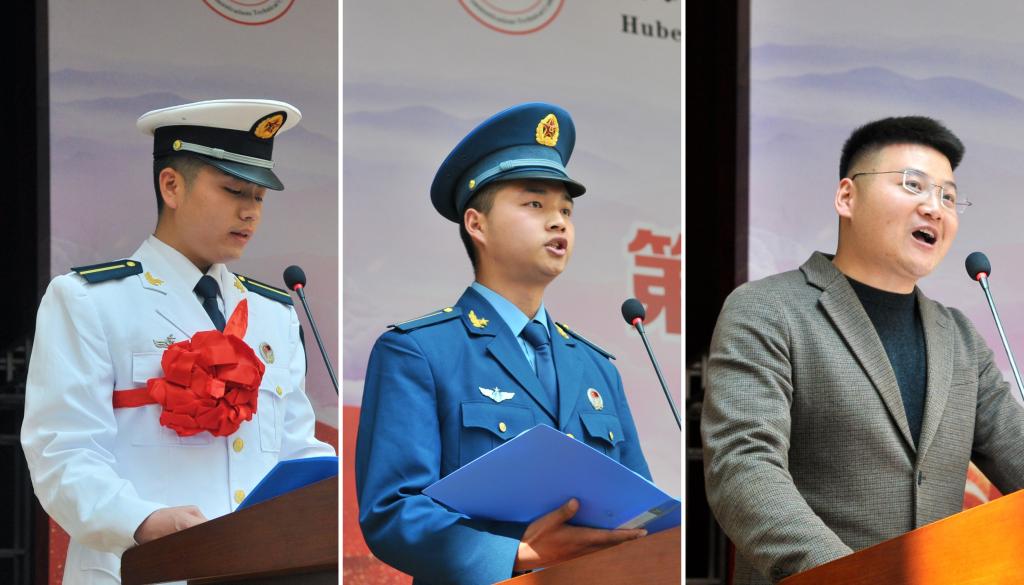 欢送会在庄严的国歌声中拉开序幕。2020级航海学院海军军士生朱义琛代表入伍军士发言,他感谢母校提供了良好的求学环境和成长平台,表示将在部队中严格要求、刻苦训练、为母校争光,为祖国争光。2021级汽车与航空学院空军军士生李铭强代表在校生送上祝福,表示要向他们学习,继续发扬好作风。2020级公路与轨道学院武警军士生代家耀的父亲作为家长代表发言,感谢部队的关怀、感谢学校的培养,鼓励军士生认真工作、勤奋学习、乐观向上、斗志昂扬、精忠报国。