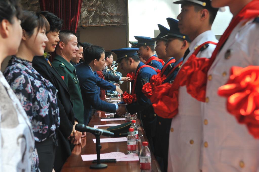 3月15日,学校在卓刀泉校区体育馆举行第九届定向培养军士入伍欢送会,海军工程大学兵器工程学院学员十大队政委朱金林、广东武警韶关支队副政委周进勇、空军95958部队政治工作处副主任陈堃、学校纪委书记齐建模、副校长谢彤出席欢送会,学校相关二级学院及职能部门负责人、党总支书记、辅导员、家长代表等共同为2020级定向培养军士光荣入伍送上祝福。