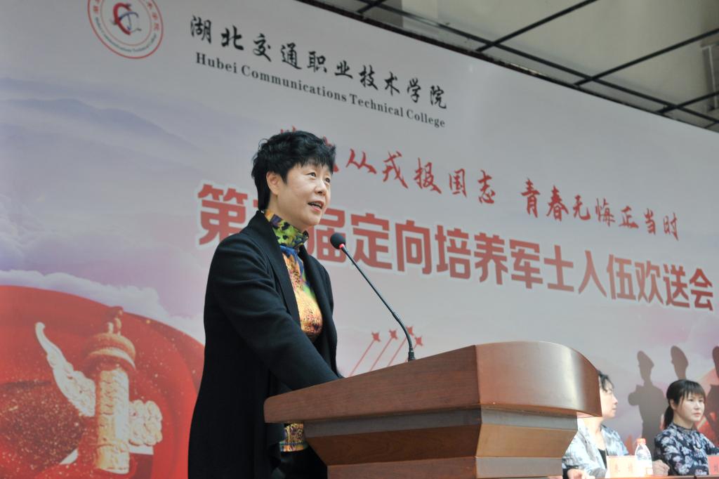 党委书记代表学校致辞,他对即将光荣入伍的524名定向培养军士表示祝贺,并对他们提出了三点期望:一是希望大家坚定理想信念,矢志从军报国。在国防和军队现代化建设事业中,不断创造出一流的工作业绩,为祖国添彩,为母校争光。二是希望大家勇于学习实践,努力锤炼成才。在新的环境、新的集体中尽快完成角色转换,早日成长为工匠型、专家型、复合型骨干军士人才。三是希望大家常怀感恩之心,积极奉献社会。不管同学们身在何处,请不要忘记父母的养育之恩,不要忘记老师的教诲之情,不要忘记祖国的殷切期待。