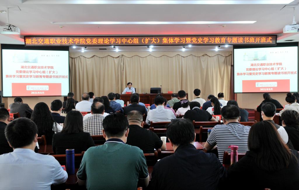 5月7日,学校党委理论学习中心组(扩大)集体学习暨党史学习教育专题读书班在培训楼三楼多功能厅开班。学校副科级及以上干部参加。