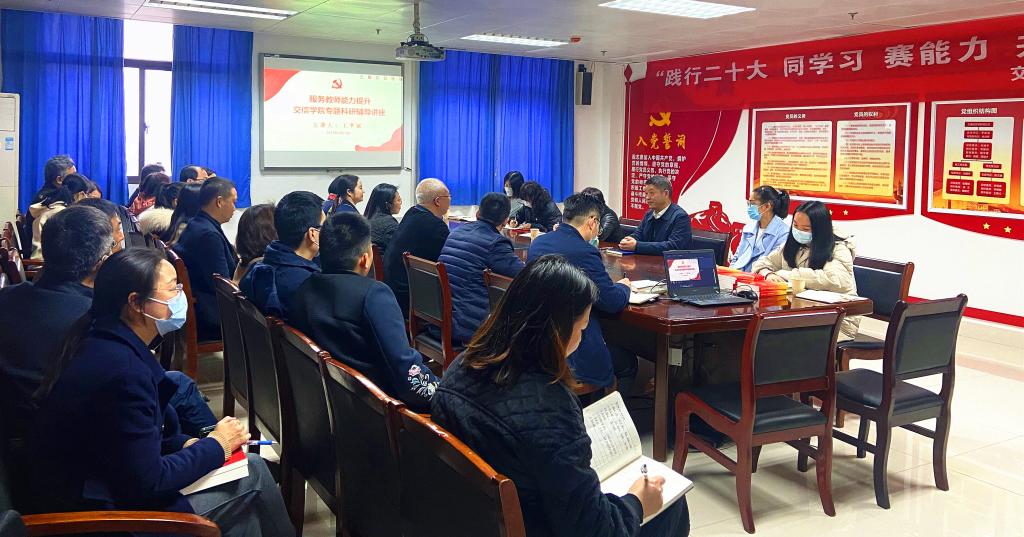 3月23日下午,交通信息学院党总支联合科研处党支部举行了“服务教师能力提升奋力当好职教先锋”主题党日活动。校联系领导校长王孝斌深入基层党建联系点参与此次活动,并作“服务教师能力提升”专题科研辅导讲座。