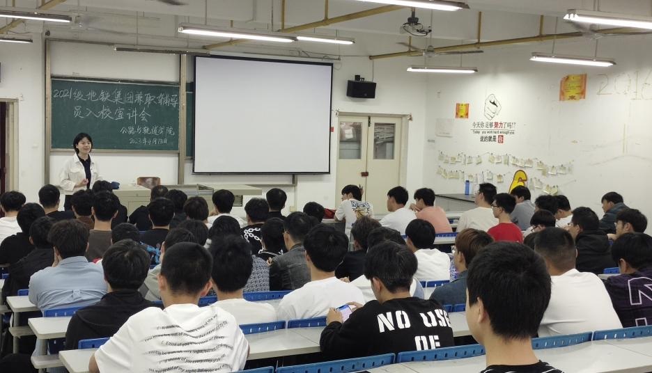 4月13日下午,武汉地铁集团培训中心主任余珺一行来我校,面向2021级地铁订单班学生进行宣讲。公路与轨道学院和交通信息学院全体地铁订单班学生共计120余人参加了此次宣讲活动。