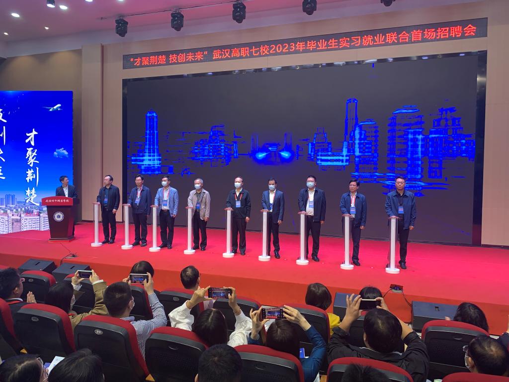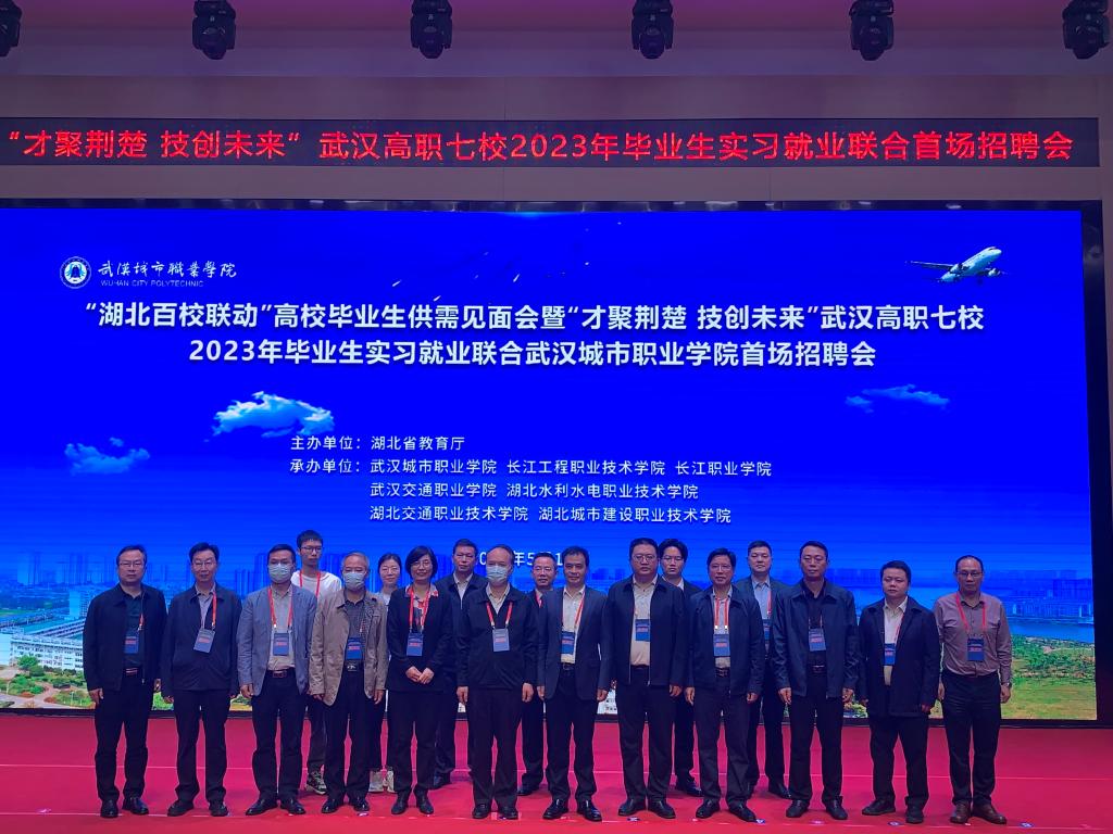 5月10日上午,“湖北百校联动”高校毕业生供需见面会暨“才聚荆楚 技创未来”武汉高职高专七校2023年毕业生实习就业联合招聘会启动仪式在武汉城市职业学院隆重举行。我校党委委员、纪委书记齐建模携招生与就业指导处、就业指导中心和各二级学院就业工作负责同志参加。省教育厅党组成员、副厅长张金元、省高等学校毕业生就业指导服务中心主任尹云波、副主任张丽萍,武汉市洪山经济开发区党工委书记、主任胡波,联合招聘高校领导、相关企业负责人代表出席启动仪式。仪式由尹云波主持。