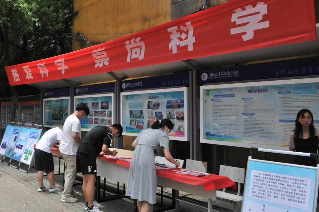 活动前,科研处组织干部职工在科普长廊前悬挂宣传横幅,展出《悬索桥的前世今生》宣传展板,简明扼要、形象生动地普及了悬索桥的分类、结构体系与受力特点,活动期间,校团委青年志愿者协会发挥学生志愿者作用,在校园组织了签名活动,广大师生积极参与,不时驻足停留、学习展板内容,活动现场氛围浓厚。