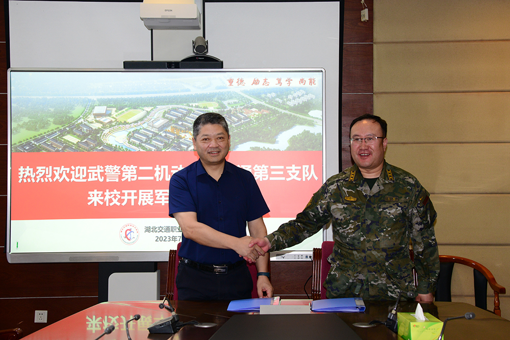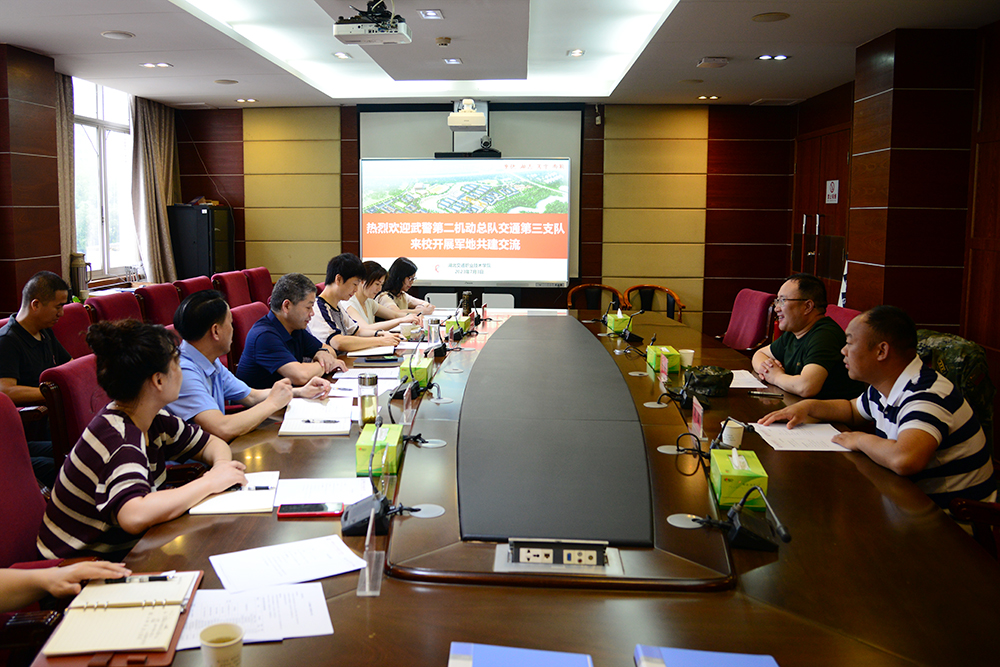 7月3日,武警第二机动总队交通第三支队政治工作部主任吴晓一行来我校开展军地共建交流,洽谈军校合作相关事宜。学校校长王孝斌、副校长谢彤以及相关职能处室、二级学院负责人参加洽谈会。