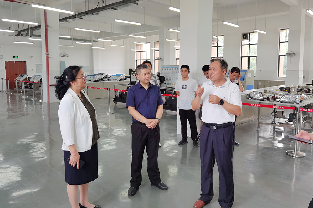 7月17日,教育部高等学校科学研究发展中心虚拟仿真实训基地建设责任专家田秀萍、新技术应用研究处干部程艳奎、广州番禹职业技术学院刘炜教授一行莅临我校,调研指导职业院校示范性虚拟仿真实训基地建设与应用情况,并召开座谈会。校长王孝斌,校党委副书记、副校长李全,教务处、网络信息中心、汽车与航空学院等部门相关负责同志参加考察调研活动。
