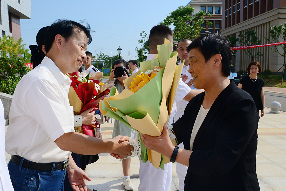 汪凡非一行实地查看学生食堂、学生宿舍、教室等地,详细询问开学准备工作情况,看望慰问教师代表,并逐一送上鲜花表达美好祝福。