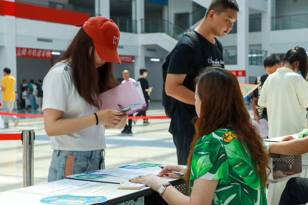 “123,咔!”在带有校标和校名的特大迎新打卡框前,新生和家长们或比V,或拿着录取通知书,在这里留下了珍贵的入学第一张照片。“感谢学校的温暖之举,不仅设置这么有意义的打卡点,还贴心地为我们提供了家长休息区,希望我的孩子能在这里学有所成!”一位来自四川的家长在拍完照片后感动地说道。