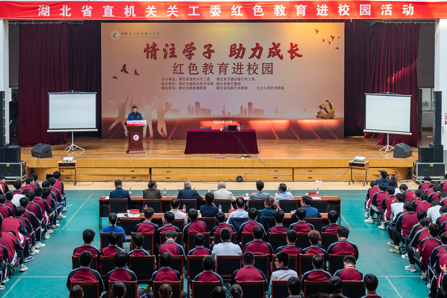 10月26日下午,由湖北省直机关关心下一代工作委员会、湖北省交通运输厅关心下一代工作委员会主办的“情注学子 助力成长”红色教育进校园活动在我校卓刀泉校区体育馆隆重举行。省关工委副主任(省政协原秘书长)王树华,省直机关关工委常务副主任李纪刚、副主任江国钧、秘书长项大鹏、办公室汪笑,湖北省交通运输厅离退休干部处处长燕建田,我校全体在家校领导出席活动。