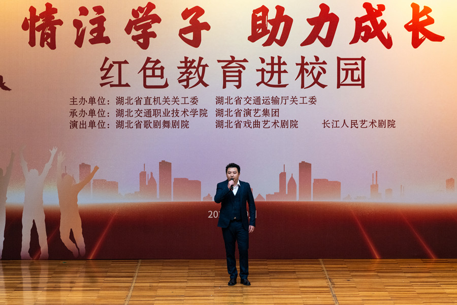 学校党委副书记、校长王孝斌作了热情洋溢的致辞,他指出,正值我校建校70周年,省直机关关工委和交运输通厅关工委来我校开展红色教育进校园活动,给我们提供了一次难得的学习机会,希望广大学子认真聆听专家的辅导报告,用心感受省演艺集团的精彩演出,弘扬共同理想、凝聚精神力量、建设道德风尚,不忘初心,牢记使命,开拓创新,锐意进取,在实现中国梦的生动实践中放飞青春梦想,在为人民利益的不懈奋斗中书写人生华章。