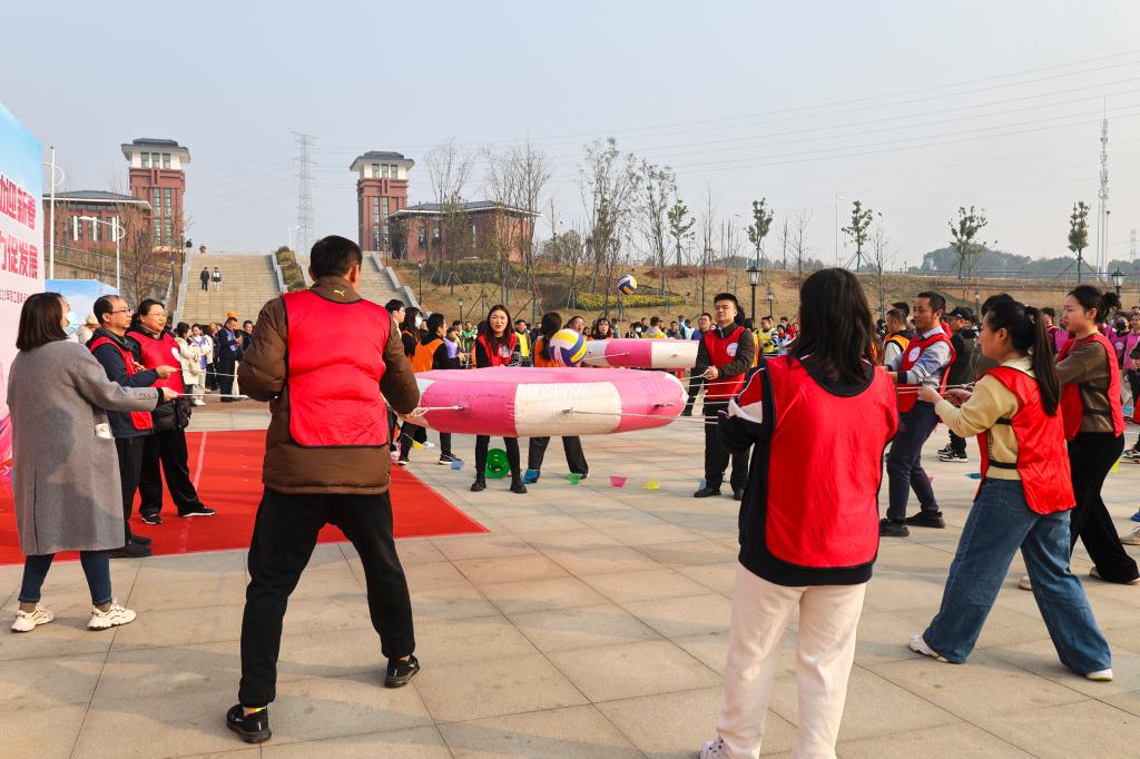 为推进学校全民健身活动的深入开展,增强团队意识,发扬团队精神,丰富校园文化生活,激励广大教职工以奋发向上、拼搏进取的精神状态投入本职工作。我校于12月28日下午举办2023年“快乐运动迎新春 凝心聚力促发展”职工趣味运动会,来自11个基层工会的近200名教职员工参加本次活动。