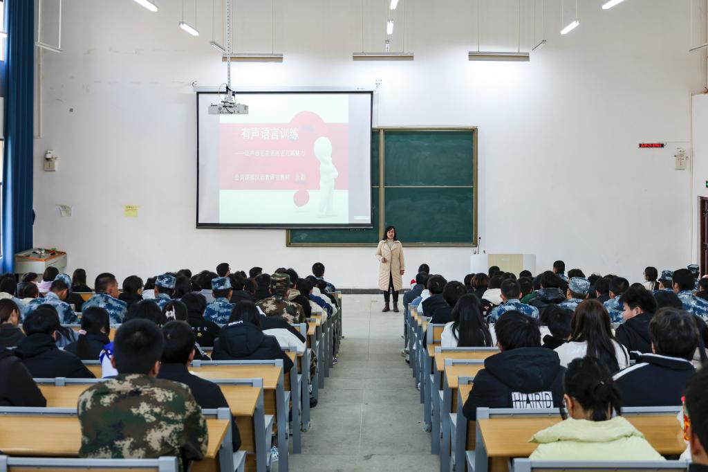 第一场是普通话专题讲座,题为“让声音更美、更亮、更有魅力”,由湖北省级普通话水平测试员、公共课部汉语教研室教师余莉讲授,围绕普通话水平测试的相关知识,如考试测试内容、鼻音边音发音技巧等内容展开,既通俗易懂,又生动具体,让同学们充分感受了普通话的魅力。
