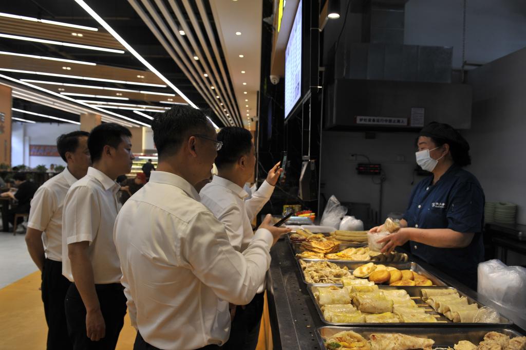 在卓刀泉校区,钟芝清来到培训楼察看客房设施,提出学校要提高培训能力和服务水平。临近中午,钟芝清来到学生餐厅,查看食堂卫生安全,在两家档口购买饭菜和饮品,与正在食堂就餐的学生共进午餐。