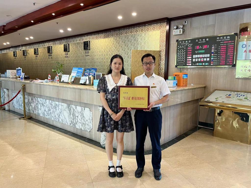 中心负责人沈俊岭表示,喜获宜昌市“军人有惠”拥军优待服务单位荣誉称号,是社会各界对中心的肯定和鼓舞。这个称号不仅是对中心服务的肯定,更是对全体员工辛勤付出的褒奖。接下来,中心将在学校党委的坚强领导下,继续秉承“拥军优属、服务军人”的宗旨,进一步优化服务,为军人提供更优质的服务和优惠,增进军民鱼水情。(摄影/覃晓丽)