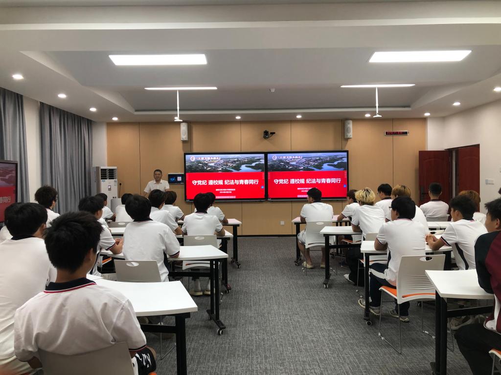 王孝斌深入班级,以“守党纪、遵校规、纪法与青春同行”为主题为联系班级上了一节主题团课,他强调,崇尚廉洁是中华民族优秀传统文化的重要组成部分,作为社会主义的建设者和接班人,他希望同学们努力学习,要“学一行、爱一行”,积极参与各项实践、学科竞赛活动,不断提高理论水平和自身素养,把个人发展融入国家复兴大业中,鼓励同学们在全面建设社会主义现代化国家新征程上奋发有为,建功立业。