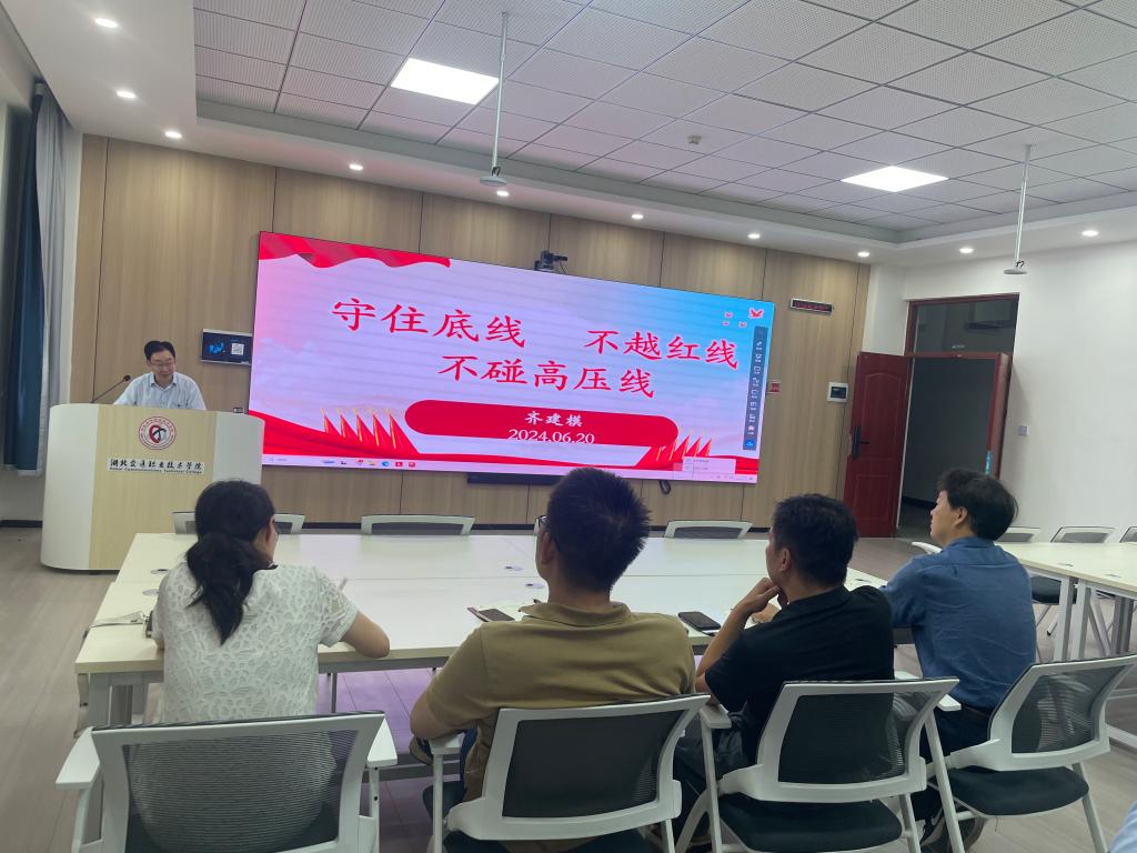 齐建模首先阐述了“底线”的重要性,指出底线是每位党员必须坚守的基本道德准则和职业规范。他强调,无论是作为教育工作者还是共产党员,都要在思想上筑牢防线,时刻保持清醒头脑,不为私利所动,不触碰社会公德和职业道德的底线。其次,他详细解读了“红线”的含义,即国家法律法规、党纪党规以及学校各项规章制度中明确禁止的行为界限。他结合公路与轨道学院的专业特点,指出在科研经费使用、工程项目招投标、教学质量管理等方面存在的问题进行了深入剖析和解答。齐建模提醒党员们要时刻绷紧纪律这根弦,严格遵守各项规定,确保工作合法合规。他也鼓励党员们积极学习新政策、新法规,不断提升自身的法治素养和业务能力,勇于担当、敢于作为,积极发挥先锋模范作用,为学院的发展贡献智慧和力量。
